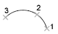 Using the center point (2), draws an arc counterclockwise from the start point (1) to an endpoint that falls on an imaginary ray drawn from the center point through the third point (3).