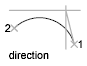 Begins the arc tangent to a specified direction. It creates any arc, major or minor, clockwise or counterclockwise, beginning with the start point (1), and ending at an endpoint (2). The direction is determined from the start point.