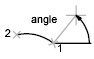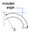 Draws an arc counterclockwise from the start point (1) to an endpoint (2), with a specified included angle. If the angle is negative, a clockwise arc is drawn.