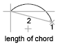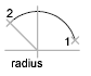 Draws the minor arc counterclockwise from the start point (1) to the endpoint (2). If the radius is negative, the major arc is drawn.