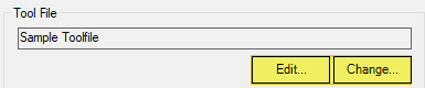 3. In the "Settings" tab, observe the toolfile section. Select "Edit" to edit the current toolfile or "Change" to assign a toolfile.