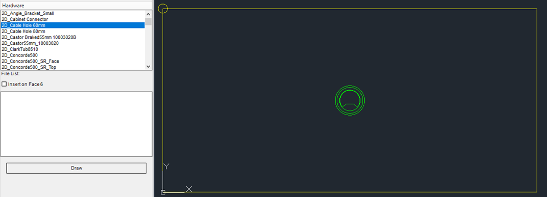 along with X, Y, and Z origins and rotations, the hardware will be drawn, but