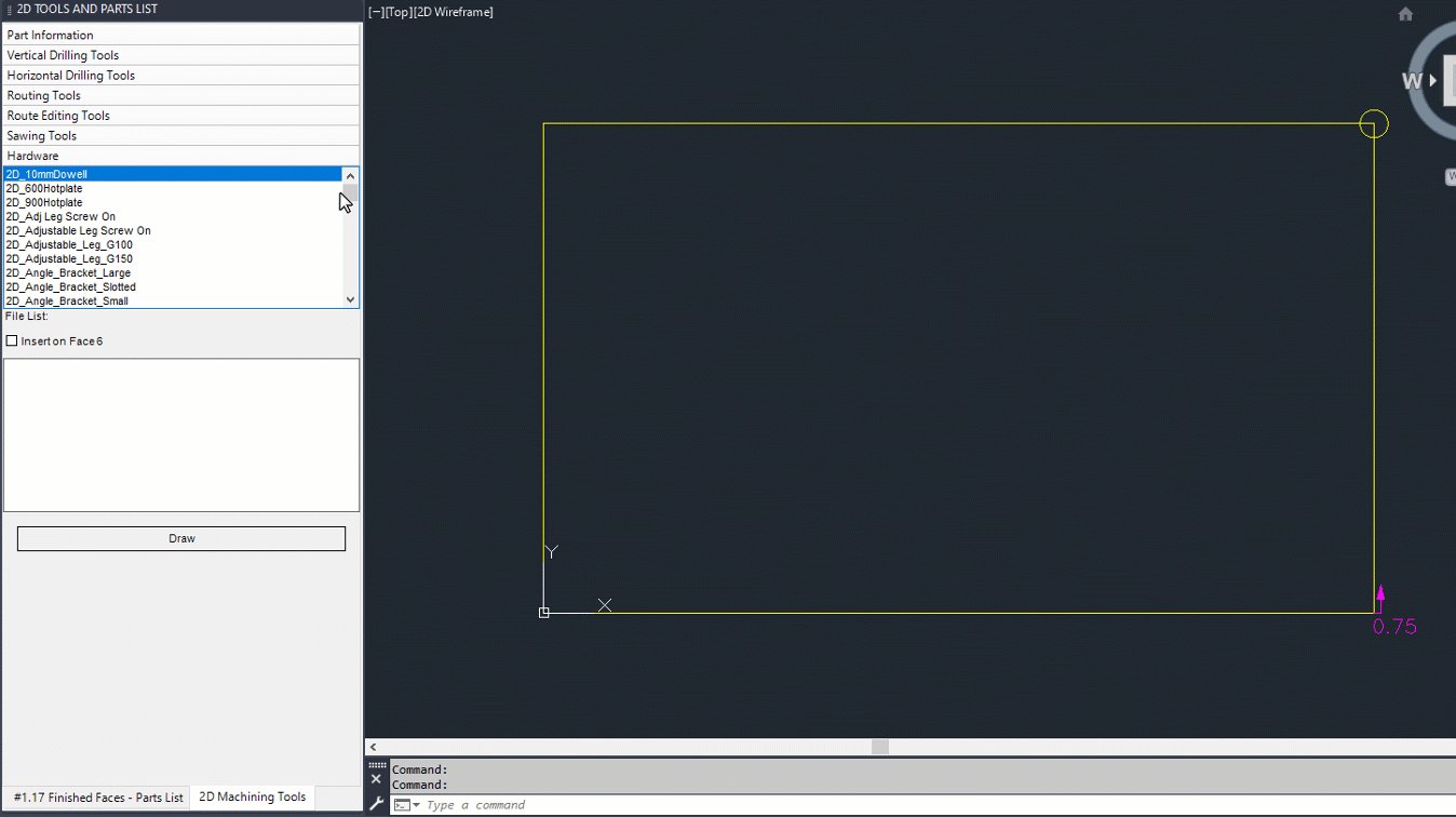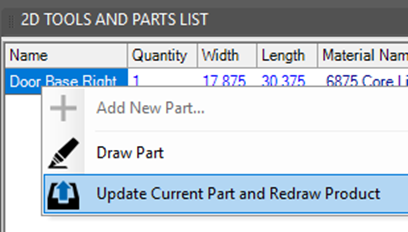 door in 2D using the “Draw2DPart” command under Modify Parts.