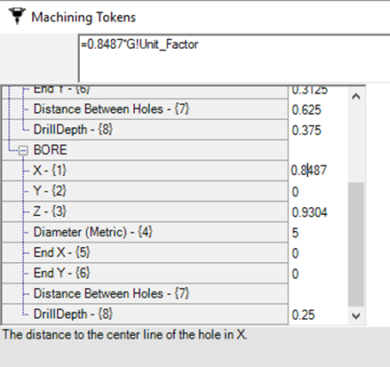 (0.8487) in the “Dim in X” parameter of the “Single Drilling Operation” of the