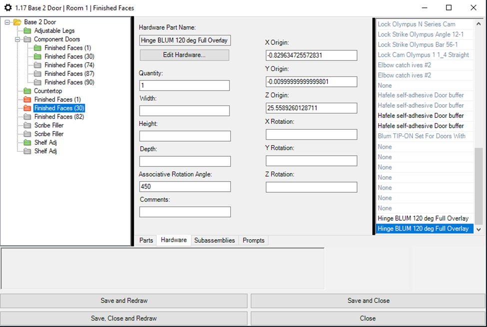 Since you are dealing with associative hardware, you do not need to worry about the X, Y, & Z rotations. However, you MUST have an Associative Rotation. The associative rotation tells Microvellum where to look for a second panel to associate it with. In this case, the “Associative Rotation” would be 0.