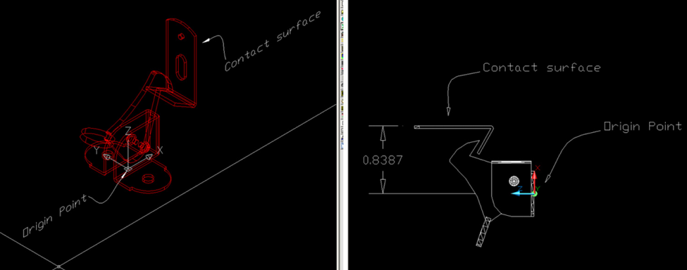 origin point, is 0.8387 inches in the X-axis. This means that the elbow catch