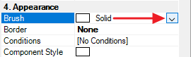 Within reports, brushes are utilized to fill backgrounds or to insert text. To change the brush style, select the dropdown next to Brush in the Object Inspector menu.