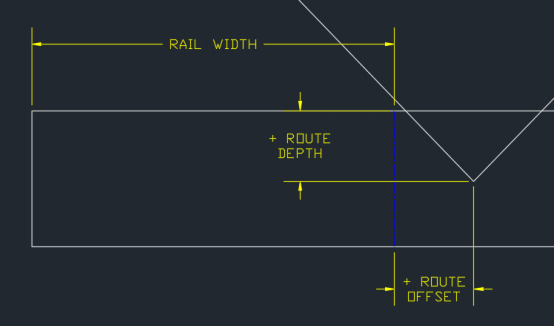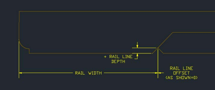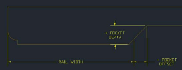 Column 141— Groove Offset (Top and Bottom) ‐ Distance from rail width to stop groove. Be sure to take tool diameter into account to avoid damage to the edge of the rail.