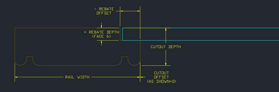 Column 117-123— Rebate settings specified in the same way as the internal profile. This cut will be active when using a glass panel or if separate center panel inserts are required instead of pocketing the face of the full thickness panel.