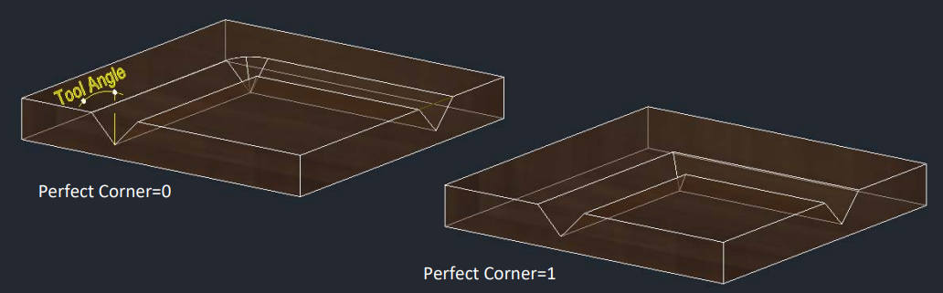 Column 8— Route 1 Perfect Corner– Specifies whether the tool needs to ramp out to make a perfect corner. Used only with V bits of any angle. Only applied to the outside edge of the inside profile such as the example below.