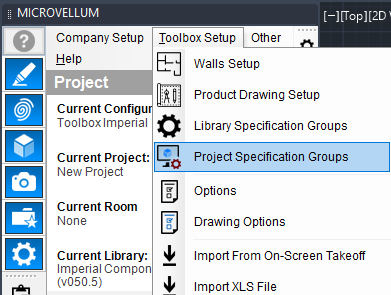 Toolbox Setup > Project Specification Groups— Project Spec Groups will access the door styles in the current project, Library will access those in the template.