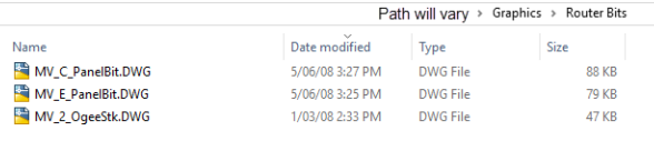 If there is no Graphics folder or no Router Bits folder inside the Graphics Folder, you can create them. You can begin with an existing tool and modify it, or begin with a new blank drawing and save it to this location. The units of the drawing file must match the units of your Microvellum configuration, inches or millimeters. The drawing must be a Closed Polyline that can be extruded.