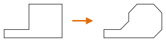 Inserts a chamfer line at each vertex of a 2D polyline where two straight line segments meet. The chamfer lines become new segments of the polyline, unless the Trim option is set to No Trim.
