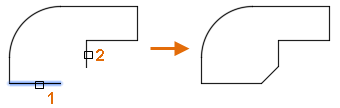 - Trim - Selected objects or line segments are trimmed to meet the endpoints of the chamfer line. If the selected objects or line segments do not intersect with the chamfer line, they are extended or trimmed before the chamfer line is added.