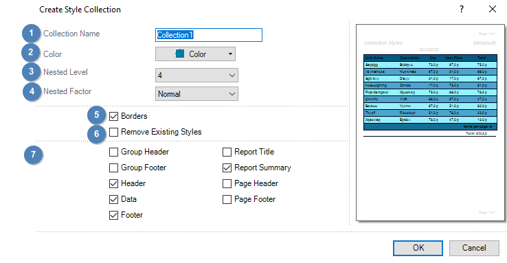 If more than one style is used in a report, the styles can be grouped into a Collection.
