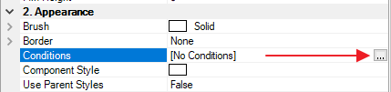 It is possible to set conditions for components so that when a condition is met, the style will be applied to that component. To modify conditions, proceed to the Conditions dialog in the properties panel of the style designer.