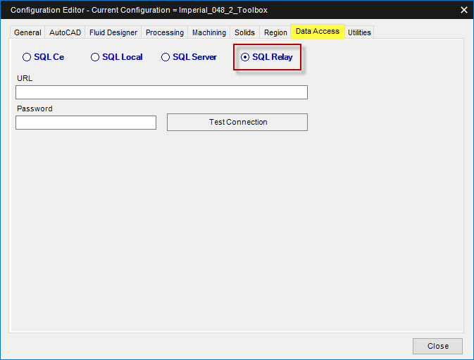 The SQL Relay database type is for use only with Microvellum Production Time Clock. With that app, it supports time entry via a remote device and requires setup services performed by Microvellum Technicians. It is not used for Toolbox at this time.