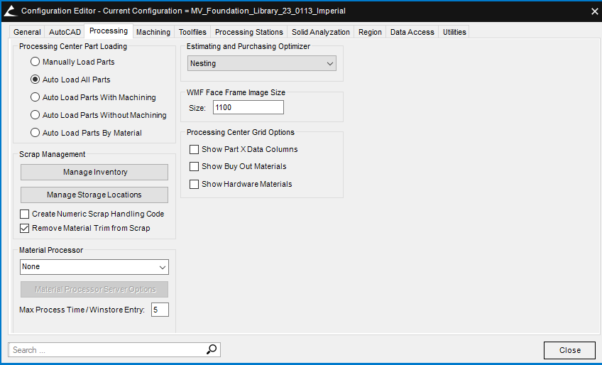 Configuration Editor: Processing Options