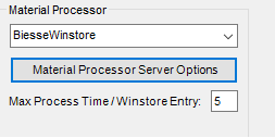 The Material Processor supports the Biesse Winstore system plug in. Here you are able to edit the settings for the SQL and Saw for your Biesse. It also allows you to enter the Max Process Time/Winstore Entry.
