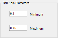 Minimum and Maximum drill hole diameter used to determine if a 3D solid with drill holes is within the acceptable range for analyzation.