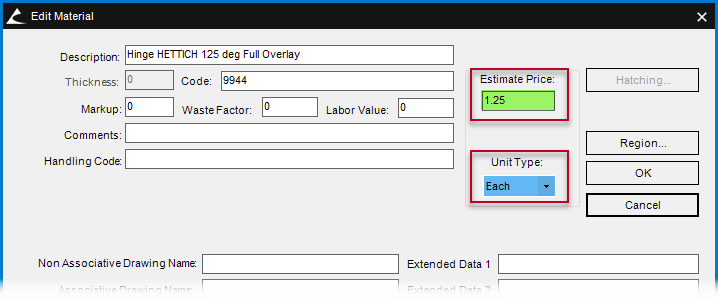 Fig. 3 - Edit Material and Enter Estimate Price and Unit Type