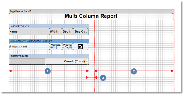 For particularly long reports, it is sometimes preferable to shorten the length by splitting the Data Band or Page up into multiple columns. The Report Designer supports two types of columns, Columns on a Page and Columns on a Data Band.
