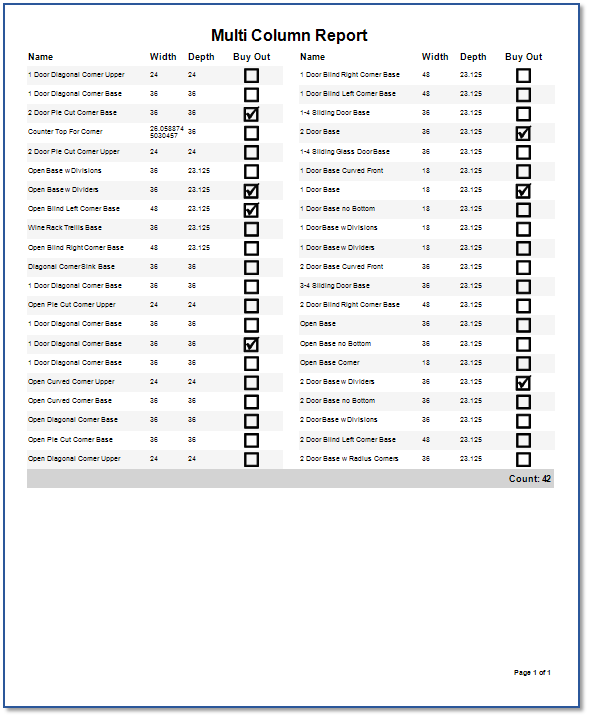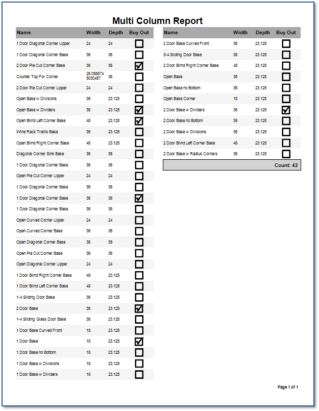 Note the difference between using Columns on a Page versus Columns on a Data Band. The Columns on a Data Band method leads to two evenly spaced columns with space at the bottom of the Page, as opposed to the empty space being in the column on the right. This method leads to a much more uniform Report.