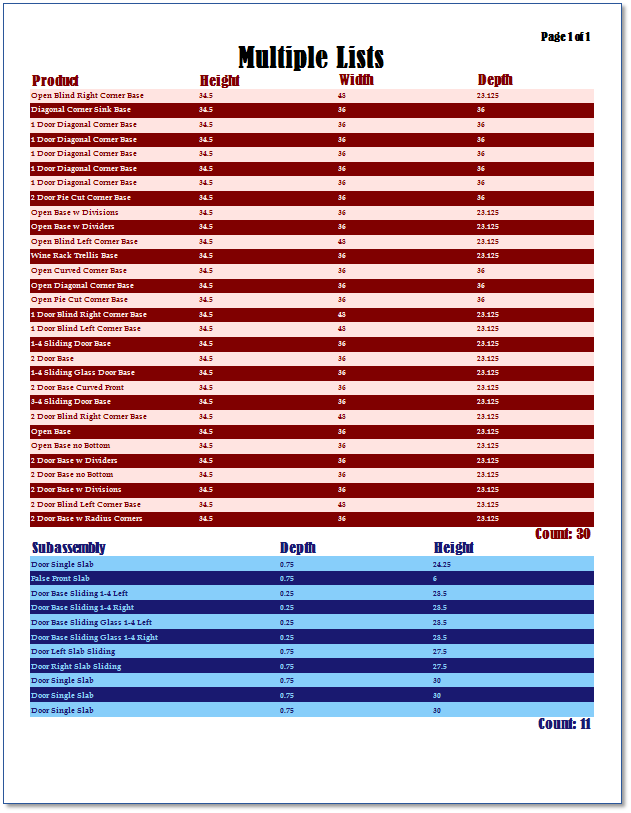 Sometimes it is necessary to print multiple lists in a report. The Report Designer has no restrictions on the amount of Data Bands that can be included. The tutorial below stands as an example of this: