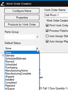 - To ensure that only active work orders are displayed, edit completed or inactive projects out of the list by editing the work orders using Database Management utility. Open the list of work orders using Work Order Properties under the Tools tab. Set the status from ManufacturingActive to None or Completed. It is suggested to set the work order default for orders be set to either ManufacturingActive or Completed, depending on how many active work orders you wish to have within the web page.