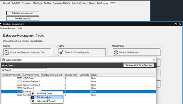 Fig. 6: Edit work orders to remove them from the active list with Database Management Tools.