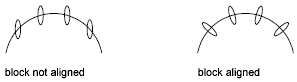 Aligns the blocks according to the curvature of the selected object. The X axes of the inserted blocks will be tangent to, or collinear with the selected object at the dividing locations.