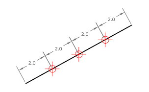 Places point objects at equal intervals along the selected objects. The number of point objects created is one less than the number of segments that you specify.