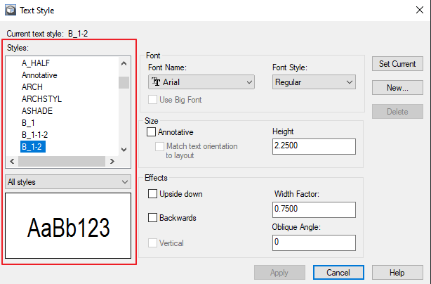 Text Style refers to an AutoCAD text style. You can find a list of available text styles in the Text Style menu.
