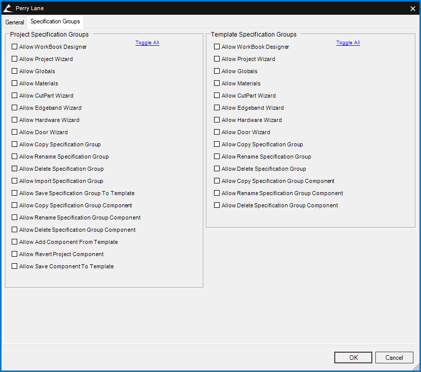 Fig. 3 - Project Spec Group Components Controlled by the Specification Groups Tab of Employee Permissions