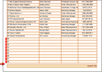 The Size Mode property indicates the behavior of the Empty Band on the bottom of a page. There are four possible values for the property: Increase Last Row, Align Footer to Top, Decrease Last Row, and Align Footer to Bottom.