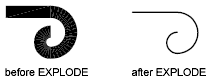 The color, linetype, and lineweight of any exploded object might change. Other results differ depending on the type of compound object you're exploding. See the following list of objects that can be exploded and the results for each.