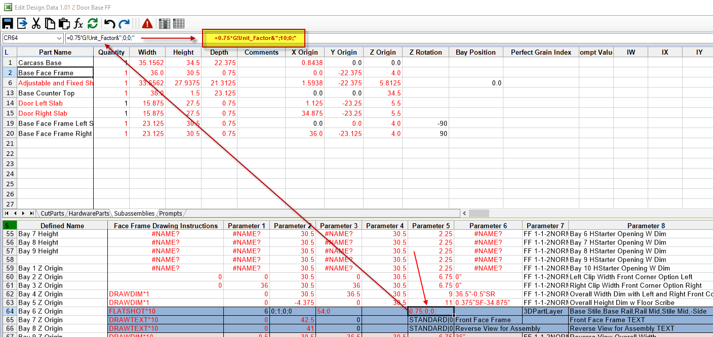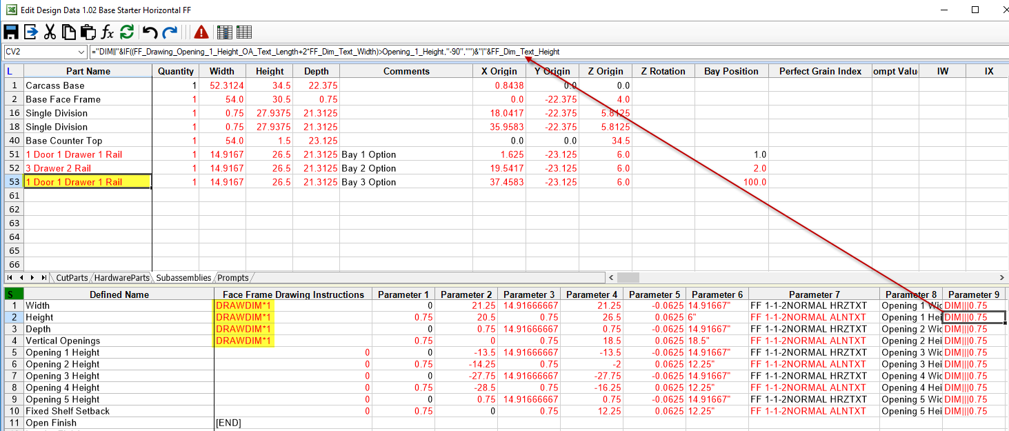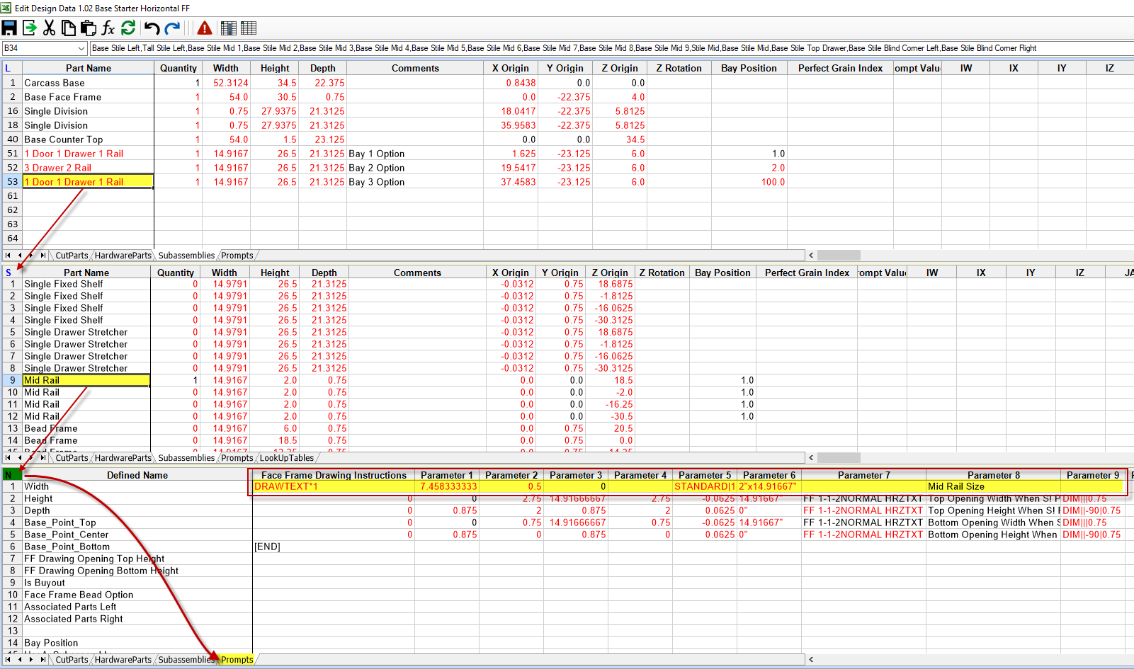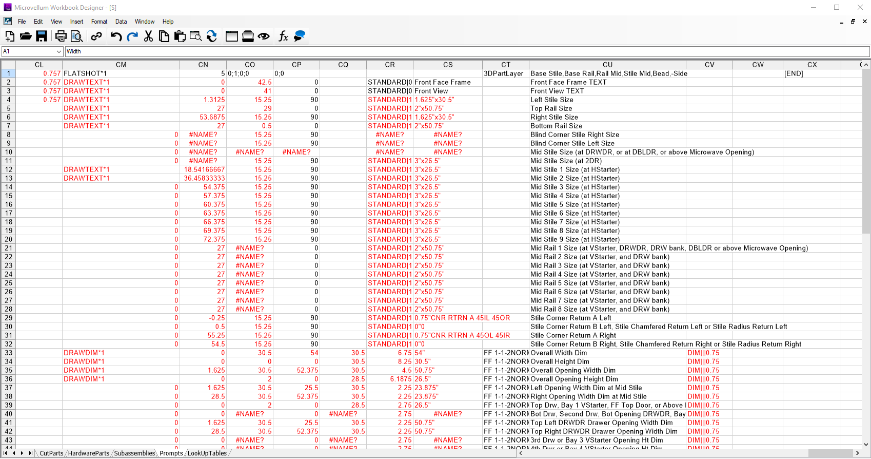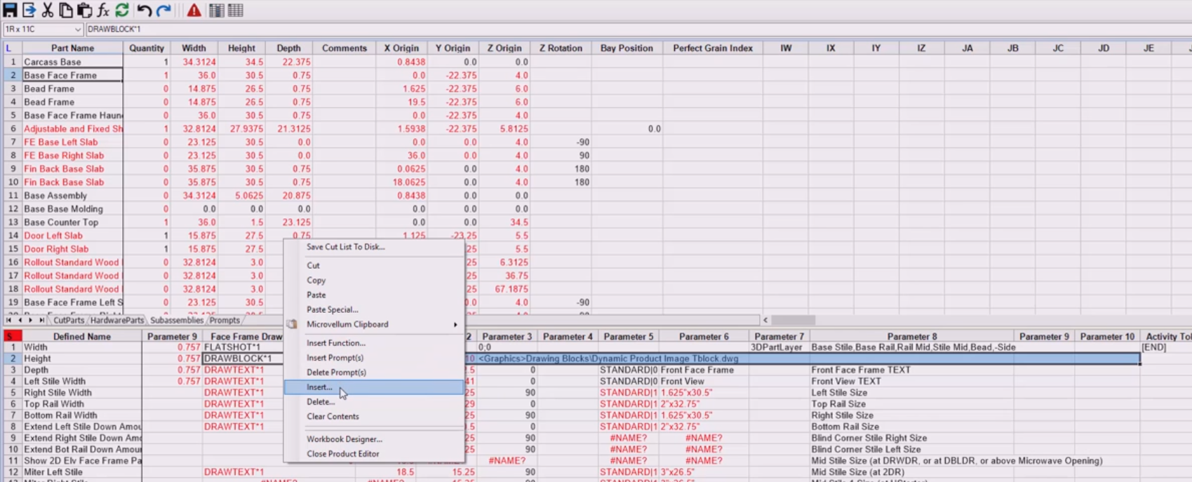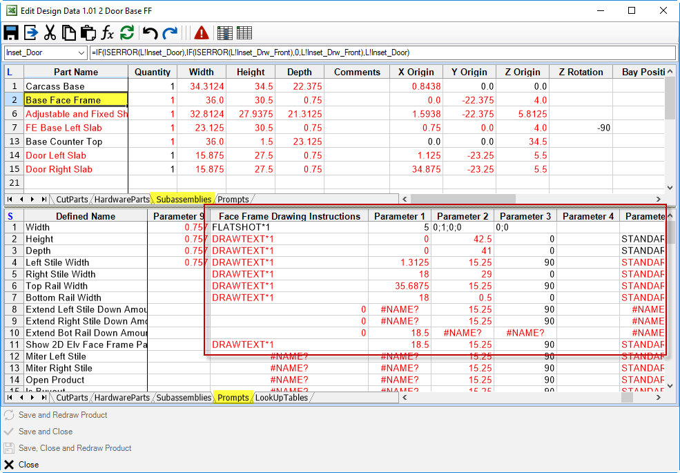 The first articles in the series discussed how to use the default functionality by adjusting prompt values. The second article discussed how to modify the face frame images produced by adjusting global variables, and demonstrated the intended use of subassembly splitters and door and drawer subassemblies. This article will focus on how to use the spreadsheet to modify the tokens and their parameters inside the spreadsheet with the goal of customizations that would not be possible otherwise.