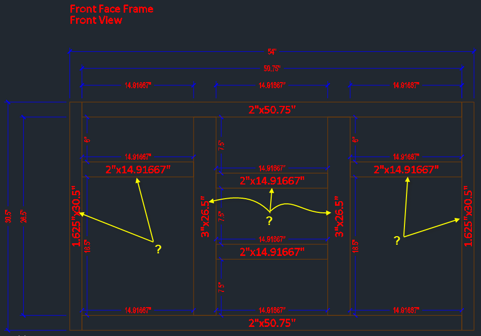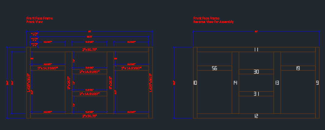 Previous versions of the program and library required you to create individual draw tokens for each part. To show shapes for each rail and stile included in the face frame assembly (DRAWRECTANGLE, DRAWLINE, etc.).