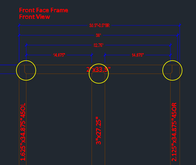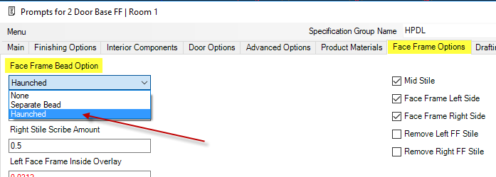 Using the Flatshot draw tokens, we get an accurate face frame image when setting the “Face Frame Options > Face Frame Bead Option” to Haunched.