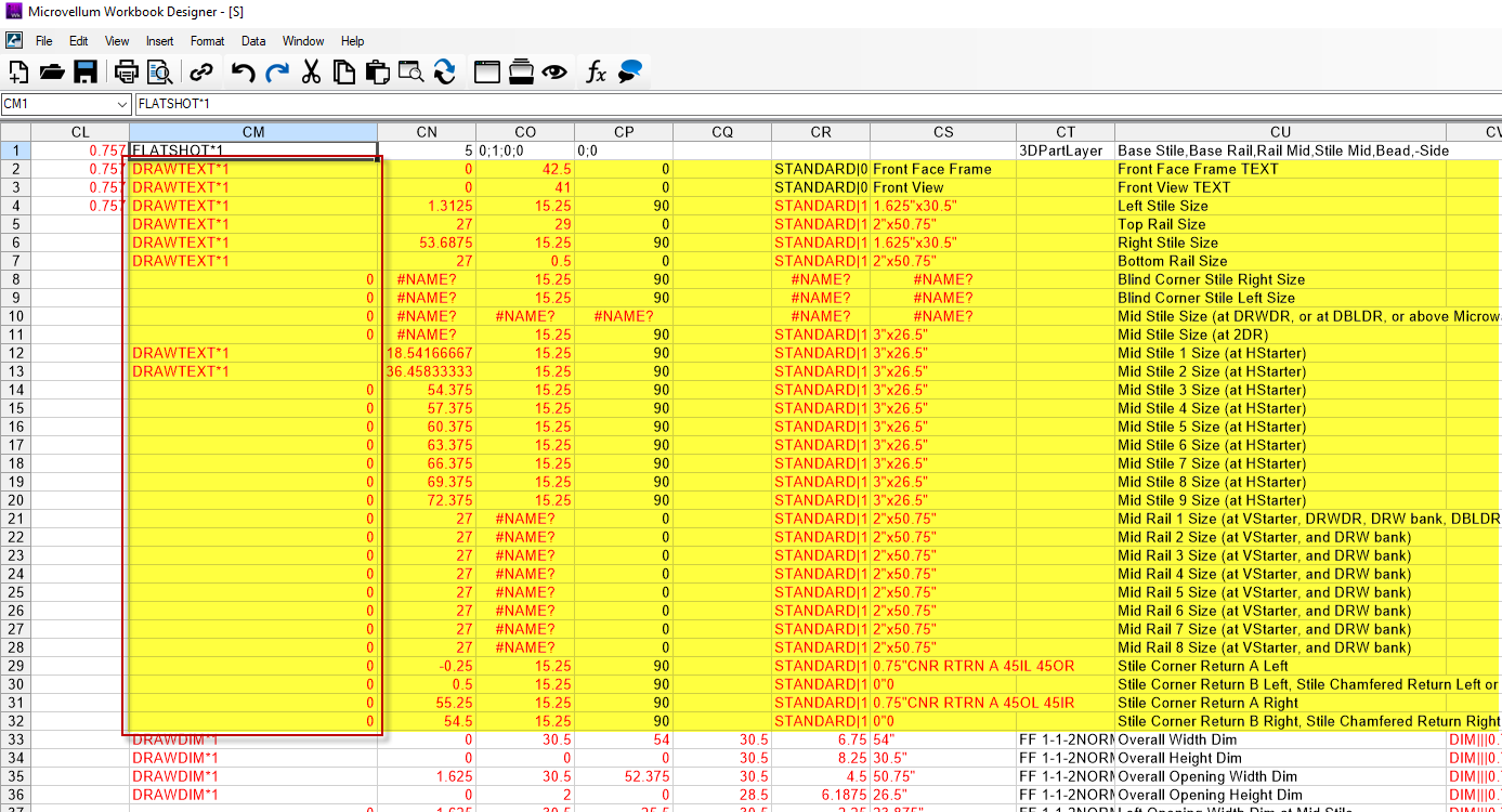 Columns CN through CW – contains the parameters to the corresponding drawtoken specified in column CM.