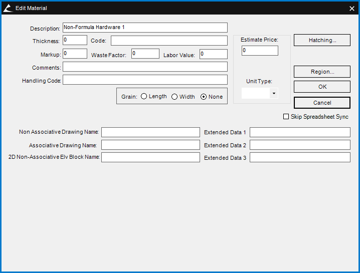 Microvellum build 15.6.1806, and greater contain several material-related improvements involving the way we work with hardware. See the figures below for screenshots of the new interface and text below that for a brief description or each change.