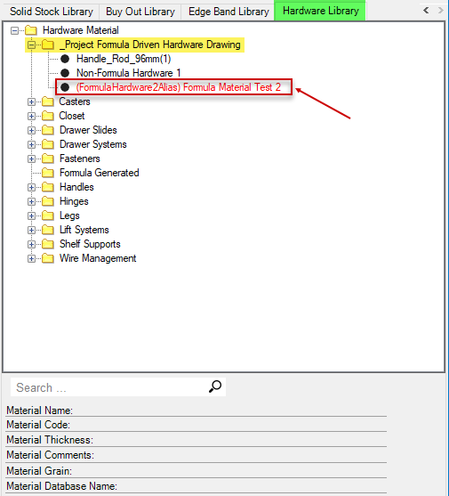Also, as of the program build noted above, formula-driven hardware materials will now store the hardware drawing name and the 2D elevation drawing name in the spreadsheet instead of only in the database. Therefore, they both may be formula-driven.