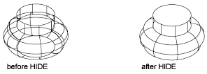 - If HIDE is used while in 2D Wireframe, use a REGEN, REDRAW, or ZOOM command.