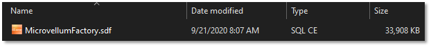 A MicrovellumFactory.sdf database file is created containing the products exported and various other tables of data.