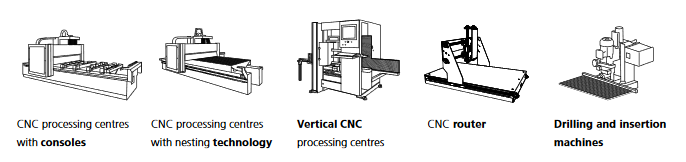 Some of our users have decided to use the Cabineo connector because they require no edge drilling, only face drilling. Yet they provide a high-strength joint. Use the following types of CNC machines for the required machining.