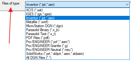 - Since this section focuses on an Inventor solid model, select and navigate to the Inventor (.iam, .ipt) file.