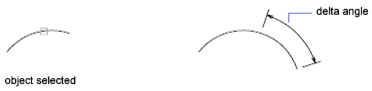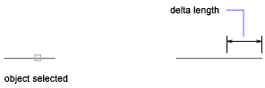 Changes the length of an object by a specified increment, measure from the endpoint that is closest to the selection point. Delta also changes the angle of an arc by a specified increment, measured from the endpoint that is closest to the selection point. A positive value extends the object; a negative value trims it.
