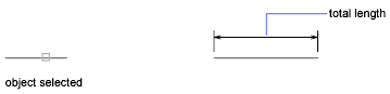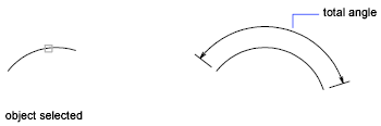 Sets the length of a selected object by specifying the total absolute length from the fixed endpoint. Total also sets the included angle of a selected arc by a specified total angle.
