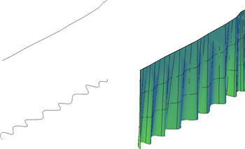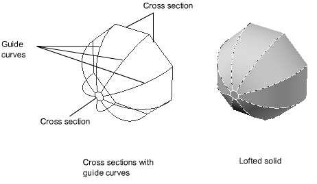 Specifies guide curves that control the shape of the lofted solid or surface. You can use guide curves to control how points are matched up on corresponding cross sections to prevent undesired results, such as wrinkles in the resulting solid or surface.