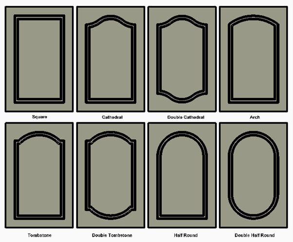 - Square | Cathedral | Double Cathedral | Arch | Double Arch | Half Round | Double Half Round | Tombstone | Double Tombstone